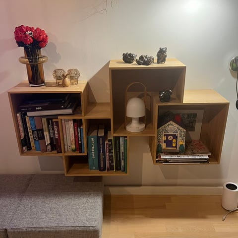 House reol fra Bolia i en fin lyserød/fersken farve. Bemærk den er skåret ned i højden fra 232 til 222 cm og der er lavet plads til panel i bund. Den fremstår rigtig flot med meget få brugsspor.