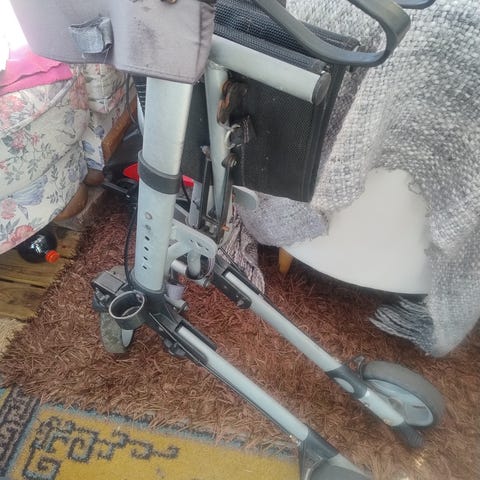 Sammenklappelig rollator.