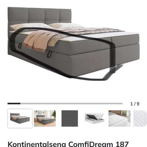 Dreamzone seng med opbevaring i mørkegråt tekstil. Sengen har løftemekanisme, så madrassen kan løftes op og give adgang til et stort opbevaringsrum i soklen. Stoffet er vævet og i en neutral mørkegrå farve, der passer til de fleste indretninger. Velegnet som enkeltseng eller gæsteseng med ekstra opbevaringsplads under liggefladen.