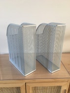 Tidsskriftsholdere 2 stk, Metallflet elegant, stilrent og tidløst design, Begge måler 32 cm i højden.