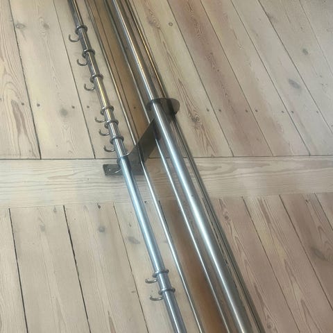 Flot retro hattehylde - opbevaring - i metal med kroge til ophæng.