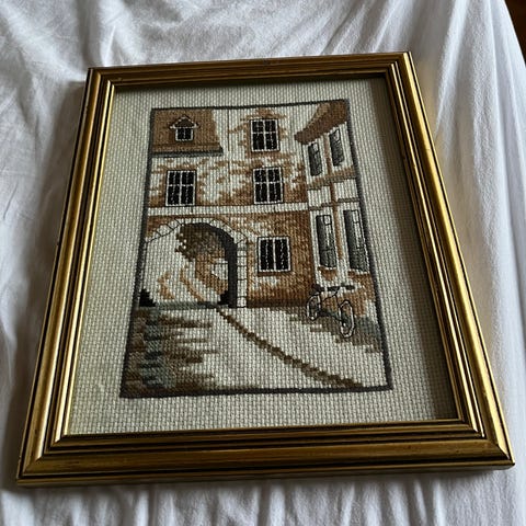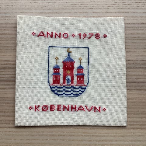 Smukt broderet billede af København anno 1587. Broderet efter et tegnet billede af Georg Braun.