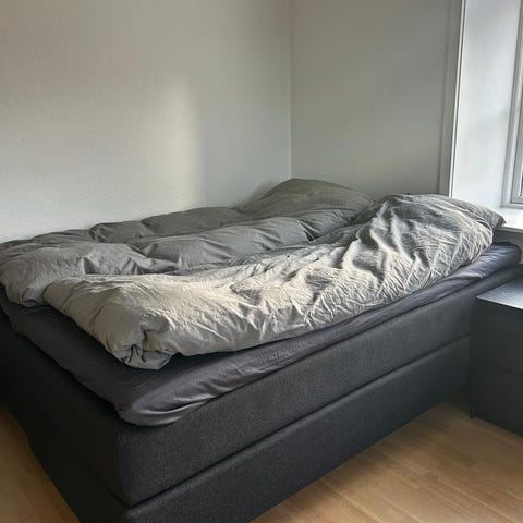 Fantastisk Jensen seng med madras. Sengen fremstår som en dobbeltseng med mørke træ ben og lys topmadras. Velegnet som fast sengeløsning i soveværelse eller gæsteværelse.