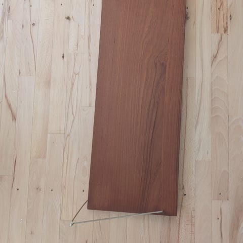Sælger denne fine teamtræhylde. Der er en revne i fineren, som helt sikkert kan repareres. Derudover i fin stand. 20x120 cm