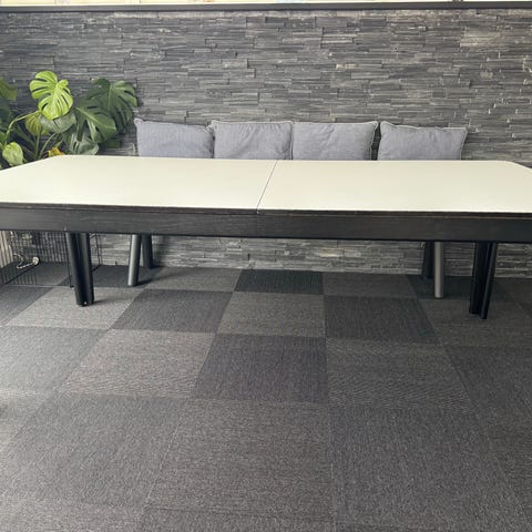 Vi købte bordet på dba for 3000,- og fik selvbetitlede ekspert på Skovbybordet, Erling Larsen, til at slibe og sprøjtemale i mørkebrun for 7500,-. Hvilket passede bedst til vores SINARP køkkenlåger fra IKEA.