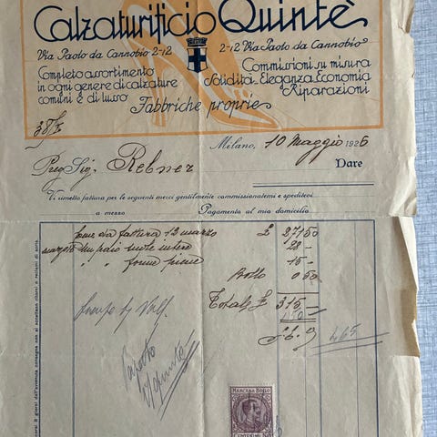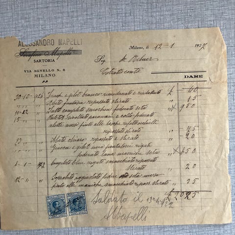 Originalt italiensk skrædder‑dokument fra 1926 – Milano‑historie på papir 🇮🇹