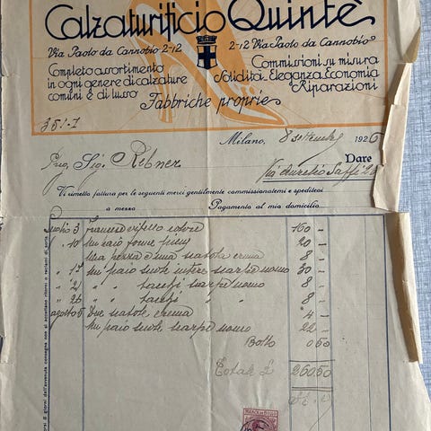 Sælger dette smukke, håndskrevne dokument fra en skrædder i Milano anno 1926.