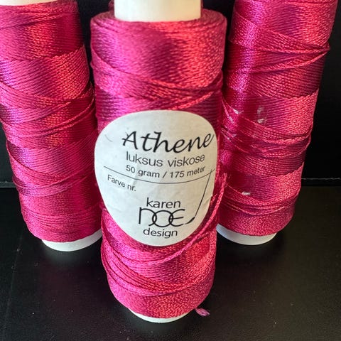 3 stk Karen Noe Design Athene garn i lilla som er glansfuld æg let.