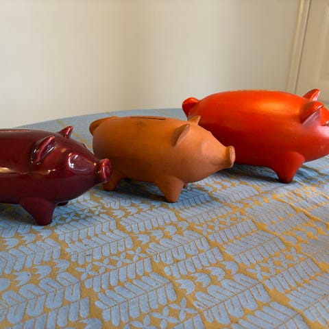 Stor Knabstrup Sparegris, længde 23 cm, højde 12 cm, har skade på det ene øre, sælges derfor billigt