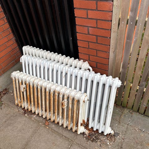 Støbejernsradiator. Er lige taget ned for at gøre plads til ny dør. Ca 97 x 63
