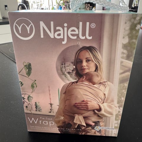 Najell Wrap er bundet på forhånd og derfor en meget nem og brugervenlig vikle. Du skal derfor ikke stå med et langt stykke stof og sørger for at binde korrekt rundt, du tager den blot på som en en bluse.