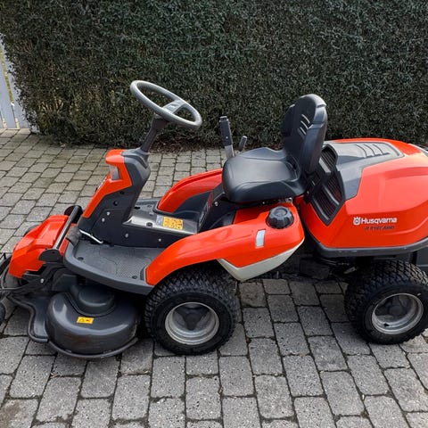 Husqvarna rider årgang 2022, havetraktor med frontmonteret klipperbord. Maskinen har førersæde med ryglæn, ratstyring og betjeningshåndtag placeret ved siden af sædet til riven. Frontmonteret klipperbord med tre knive giver god oversigt under klipning. Baghjulene er brede for bedre greb på underlaget. På billederne ses desuden en rive som kan monteres bag på traktoren. Velegnet til klipning og vedligeholdelse af mellemstore til større græsarealer omkring hus eller landejendom. Sælges da vi er flyttet i parcelhus.