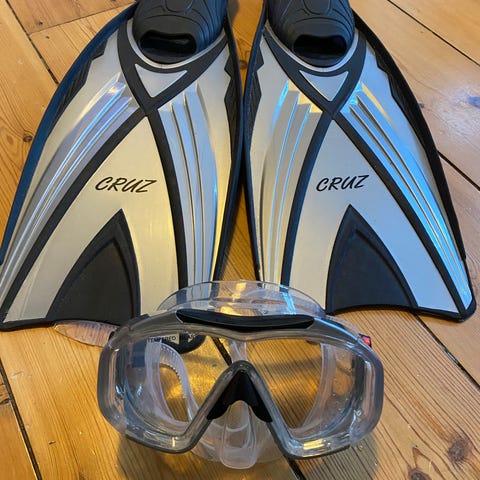 Dykkerudstyr: bøje med dykkerflag, snorklesæt mm