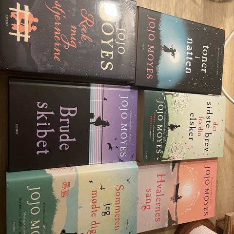 Jojo Moyes bogsamling med seks romaner på dansk. Alle er hardback.
