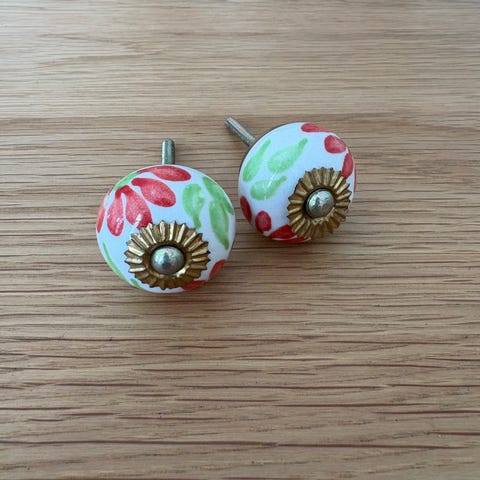 Virkelig fine procelænsgreb. Flotte farver, jeg har selv brugt dem på en kommode. Købt i Afrika.