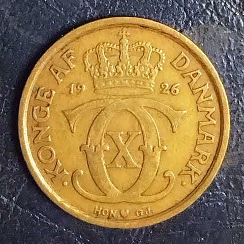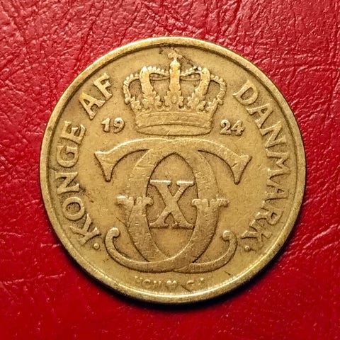 2 KR KRONE 1924 Bedre År! CHRISTIAN X KM# 825 2 Kr Kroner 1924 Christian X 1924 - 1941 Aluminium-bronze • 13 g • ø 31 mm KM# 825