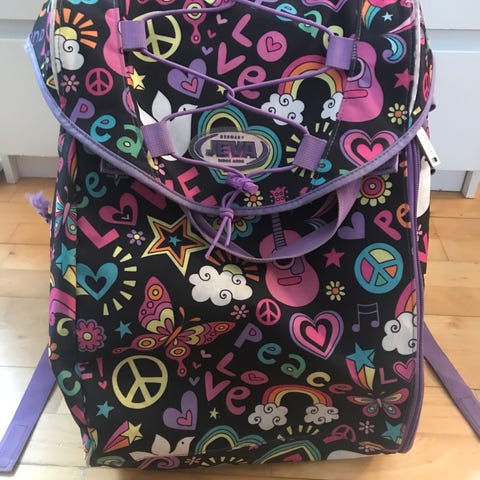 Rigtig godt indrettet, så der er plads og orden i de ting, der skal med i skole. Passer til 1. til 6. klasse. Nem adgang til alle lommer og god lynlås.