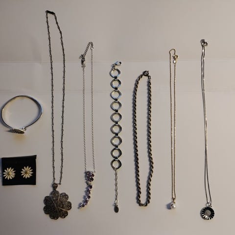 Smykkesæt, sølv, Forskellige, SUPER DYRE TROLLE CHAMS I FORSKELLIGE MÆRKER.SØLV.Sildebens kæder.SØLV.Armbånd 19cm Halskæde 45cm..