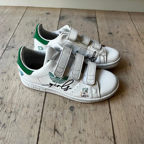 Adidas Advantage sneakers til piger i str. 38. Modellen er i hvid med lyserøde detaljer på hælen og klassiske striber i siderne. Snørelukning og flad gummisål. Velegnet som hverdagssko eller fritidssko. Str. 38 3/4.