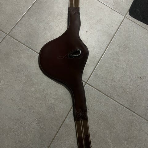 Mørkebrun Springgjord med plade, som ny, kan ikke huske om den er prøvet på, men den hænger bare og samler støv.