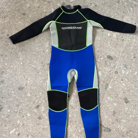 Våddragt til barn i str. 146-152 cm (ca. 10-12 år). Dragten er i sort med gule ærmer og kontrastsyninger. Materialet er 90 % neopren og 10 % polyamid. Lynlås i ryggen med snor for nem lukning. Egnet til brug i vandaktiviteter, hvor der ønskes isolering og bevægelsesfrihed.