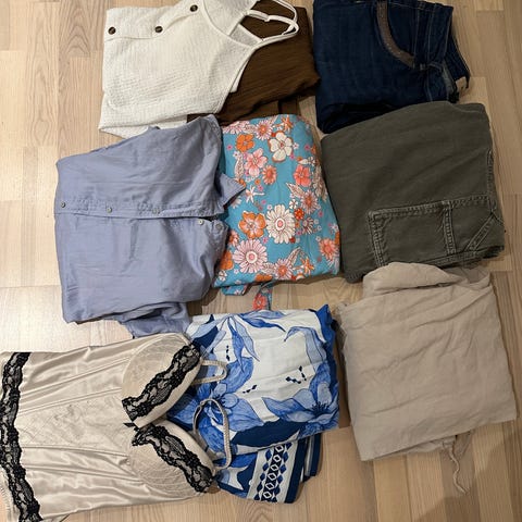 Hver pakke koster 150,-kr med rigtig fint tøj i gode mærker str L. Noget er nyt og ubrugt. Sælger kun samlet pr pakke som koster 150,-kr
