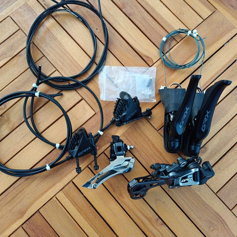Shimano GRX 11 speed gruppe. Kørt i sæson. Kassette og kæde følger med. Sender gerne mod forud betaling