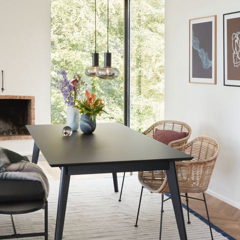 Dette FSC-certificeret egetræs spisebord har et enkelt og minimalistisk design, som gør at bordet passer til forskellige stilarter
