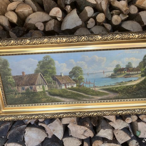 Maleri landskab i guldramme