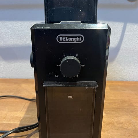 Sælger denne pålidelige og effektive DeLonghi kaffekværn i sort. Hvis du vil opgradere din kaffeoplevelse, er friskkværnede bønner vejen frem, og denne maskine gør det utrolig nemt.