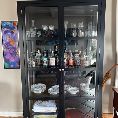 Display vitrineskab fra Ilva. Sortlakeret mdf og døre/sider med glas. 2 låger og 4 hylder. Det er en udgået vare. Enkelte brugsspor, men intet man ser.