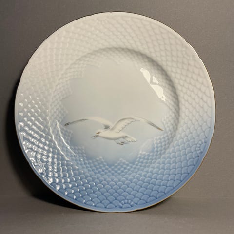 25 A Mågestel - Stor middags-/Dæk-tallerken m/guld Ø 26 cm, Bing og Grøndahl nr. 25A