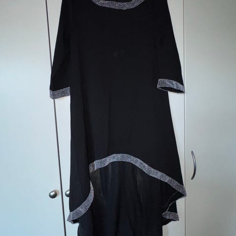 Måler 2x52cm over bryst og længden er 125cm.