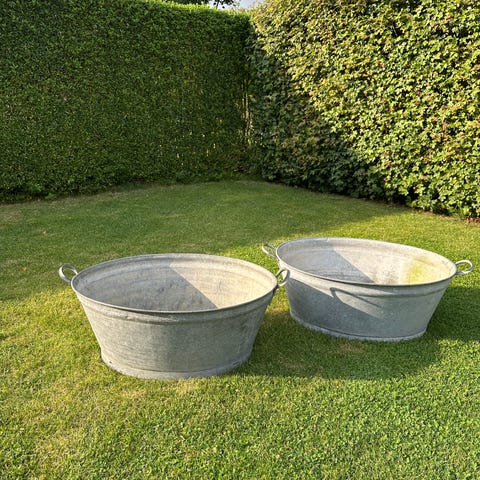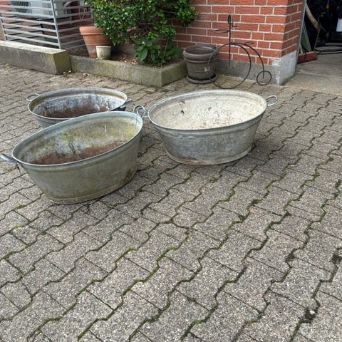Zinkbaljer, 2 stk. store zink baljer 30 cm høje og ø 63 cm