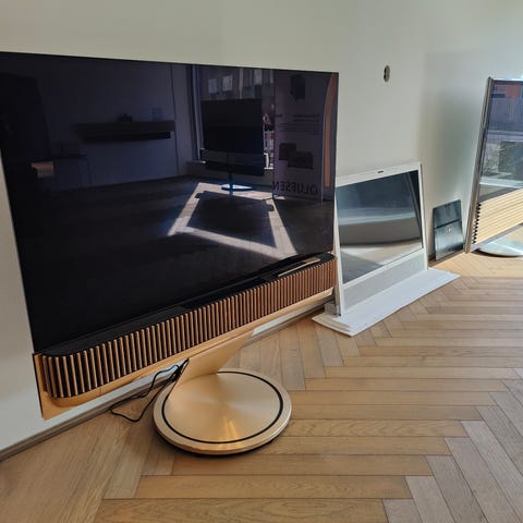 Motoriseret vægbeslag til Beovision Theatre 55", komplet med afdækning og alu-skinne (natural). Højremonteret set fra front. Fuldstændig som nyt - meget begrænset brugt. Nypris kr. 23.000. Evt. bytte med bordstand. Fast pris.