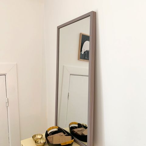 Gridy Me spejl fra Menu. Oak. Mål: 34x 25 cm. Super god stand. Spejlet kan ligge vandret og lodret. Spejlet har to sider: den ene er almindeligt spejl og den anden side har flot røget look.
