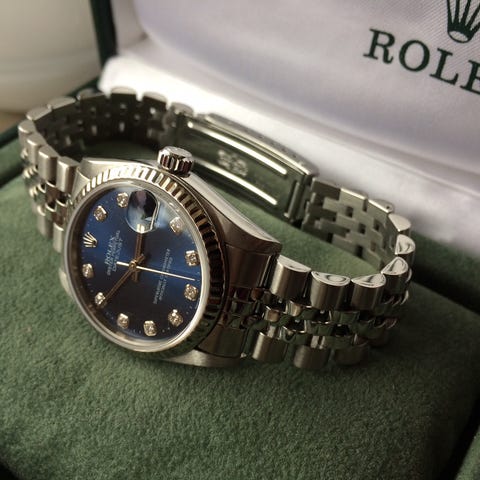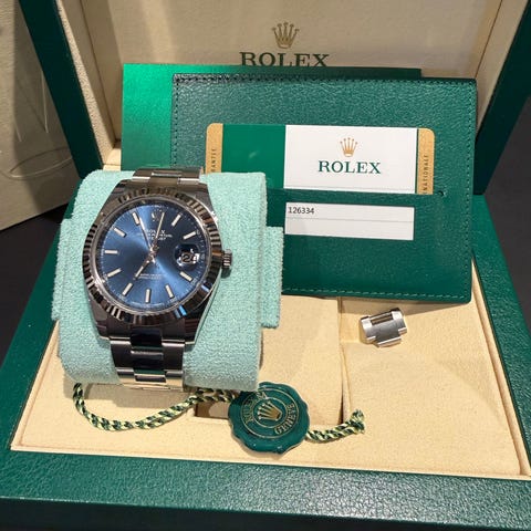 Uret er et af de mest elegante moderne Datejust-designs og kombinerer den klassiske Rolex æstetik med en meget efterspurgt farve, som skifter flot i lyset.