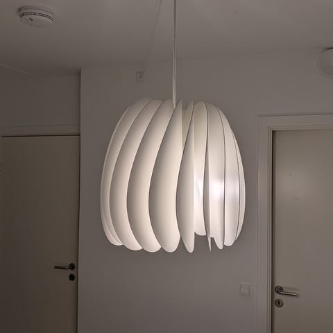 God lampe der ikke skinner i øjnene pga lamellernes placering. Man ser ikke pæren.