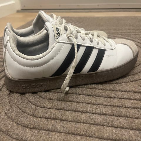 Adidas sneakers i str. 40 i grå farve med hvide striber og hvid sål. Klassisk snøremodel egnet til hverdagsbrug.