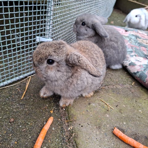 Vi har 5 utrolig søde og kælne kaninunger til salg. Det er alle hanner.