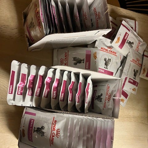 Foderet er et veterinært fuldfoder udviklet til katte med nyreproblemer.