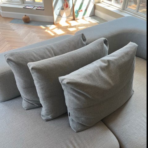 Fritz Hansen pude i grå. Rektangulær pyntepude, velegnet til sofa eller seng som ryg- eller pyntepude i stuen eller soveværelset. Nypris 1099,-