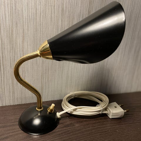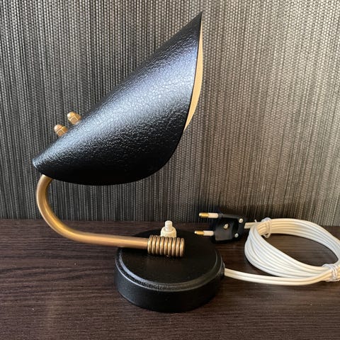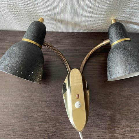 2 væglamper af Fog og Mørup fra 1950´erne. Farve: Mat bordoux rød, messing flexarme.