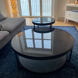 Sofabord i antracit marmormønstret/sort glas.