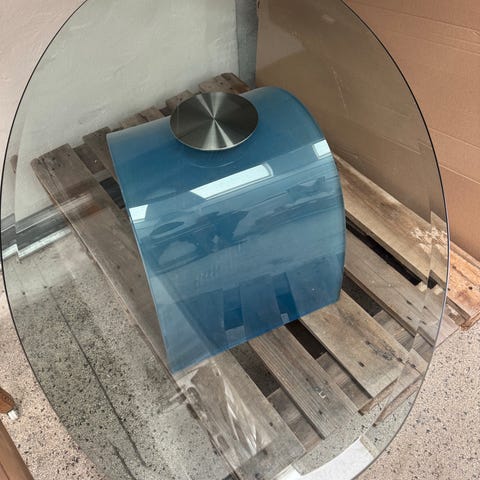Stel har små brugstegn. Den blanke side af bordet har enkelte ridser, men den mat side er som helt ny.