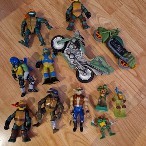 Turtles actionfigurer fra 1988. Højde ca 6,5 cm. Velegnet som legetøj eller samlerobjekt.