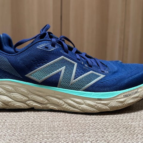 New Balance løbesko i størrelse 45. Skoene er i blå nuancer med kontrastdetaljer og snørelukning. Overdelen er i åndbart mesh-tekstil, og sålen er en polstret gummisål med mønster, der er egnet til løb. Velegnet som løbesko til hverdagstræning eller anden sportsbrug, hvor der ønskes en let og ventileret sko.