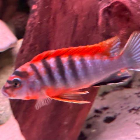 Sælger en næsten udfarvet flok ungfisk op til 8 cm.