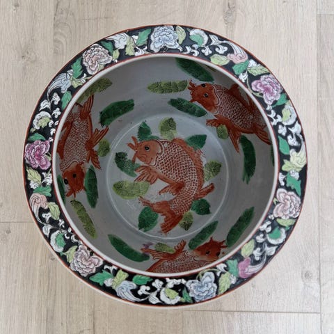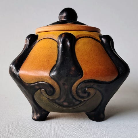 Semiantik 1 stk Statelig Forfinet delvist håndmalet lågkrukke Oldemor tekrukke m. låg.