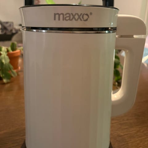 Suppemaskine med smoothiefunktion. Maskinen kan suatere, koge og blende supper. Jeg har været glad for den, men får den ikke brugt længere. Nypris er omkring 800-1000kr.